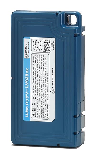 9Ah Li-ionバッテリー LV-925MX●急速充電器対応9Ahバッテリー●持ちやすさも考えたケースデザイン●高い安全性・小型・軽量(1.8kg)・高出力・国産●メモリー効果がなく、継ぎ足し充電OK■バッテリータイプ : リチウムイオン■バッテリー電圧 : DC25.9v■バッテリー容量 : 9Ah■バッテリー重量 : 1.8kg