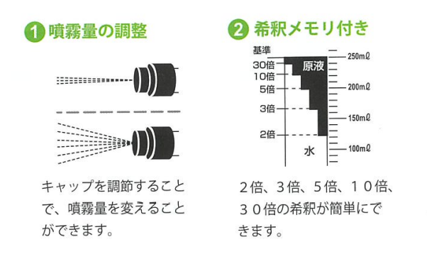 マイクロスプレー携帯しやすい350mLボトルサッと取り出しても重さが気になりにくいボトルサイズです。替えボトルをストックすることで簡単に交換が可能です。洗剤の種類や希釈倍率によってキャップを変え区別が可能