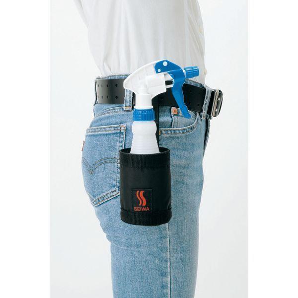 マイクロスプレーホルダー作業に便利な簡単固定のスプレーホルダー取り外しが簡単な面ファスナー固定で腰に携帯することで両手がフリーになります。一般的な500mLのペットボトルも入ります。