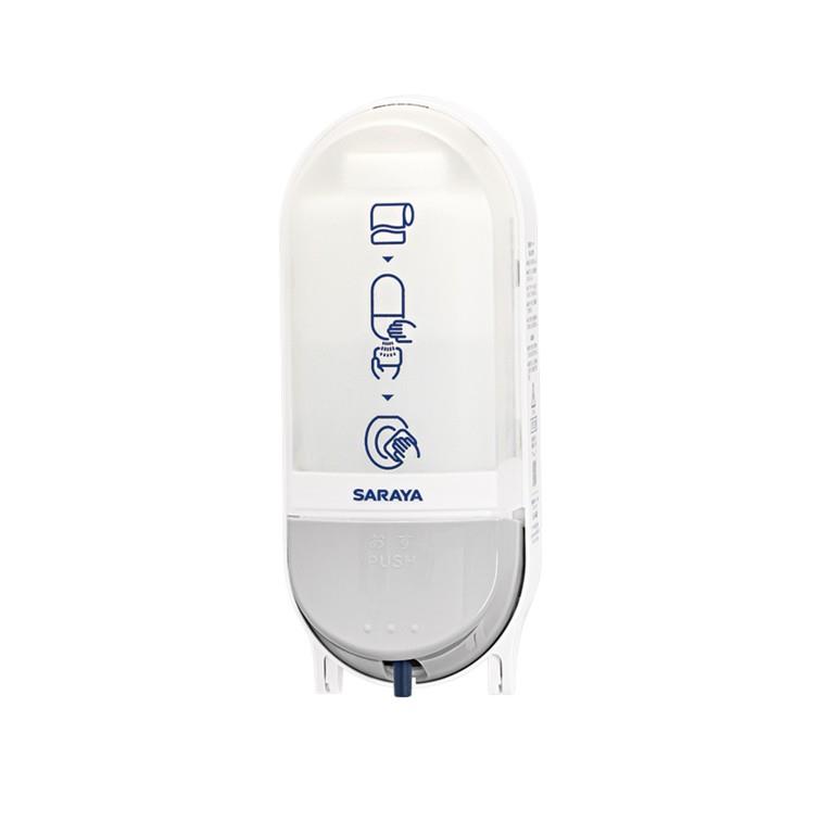 便座除菌クリーナーを入れて使用するディスペンサーです。本体正面に使用手順をイラスト表記してあります。