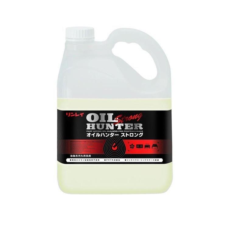 オイルハンターストロングは、飲食店、ホテルなどの厨房の動物・植物系の油汚れ、レンジ周り、オーブン、フライヤー、ダクト、床などに固着した汚れやコゲに高い洗浄力があり、泡切れがよく使いやすい洗剤です。